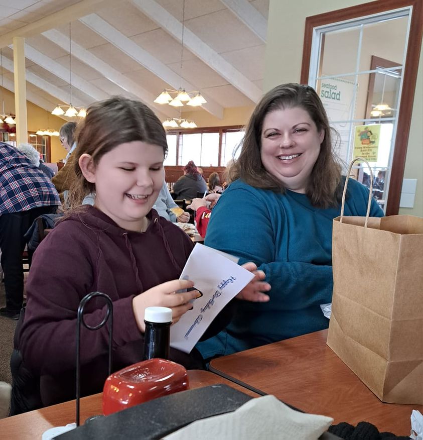 Gracie and Annalyn think “Bluey” is fantastic, me, not so much. She wanted a Bluey “Squishmallow” for her birthday. (Said Bluey was delayed due to weather, thus the note in her hand.)