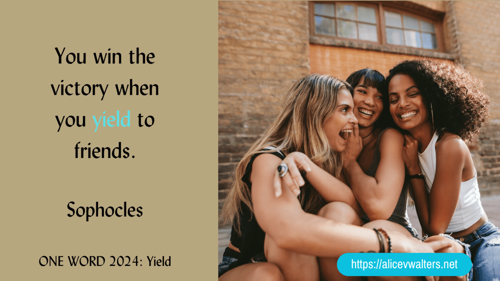 Let’s just think about this for a minute, shall we? Is there anyone out there who intentionaly chooses friends who are deliberately unkind, untrustworthy, or unreliable? Probably not. Kinda puts yielding to friends a little easier, doesn’t it?