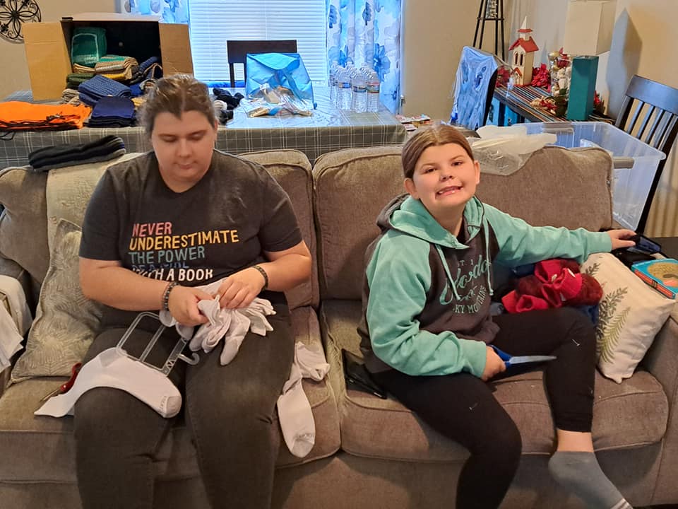 There’s also plenty of service going on behind the scenes, sometimes big, other times, not so much. Like rolling socks for men’s personal care bags, or rolling yarn for the some of the hundreds of scarves that will be crocheted and given to unhoused men, women, and children this winter. It all matters!